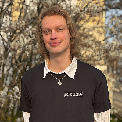 Ich bin Marlo, 23 Jahre alt und im zweiten Semester meines Bachelors in Medieninformatik. Seit diesem Semester unterstütze ich als gewähltes Mitglied den Fachschaftsrat und vertrete zusammen mit Nele das Amt "Soziales". Außerdem bin ich die Ersatzvertretung für den Prüfungsausschuss der Medieninformatik-Studiengänge und für Evaluation zuständig. Wenn ich mal nicht mit meinem Studium oder dem FSR beschäftigt bin, besuche ich Museen oder ähnliche künstlerische Veranstaltungen, kümmere mich um meine Pflanzen oder verbringe Zeit mit meinen Freunden. Außerdem zocke ich gerne.